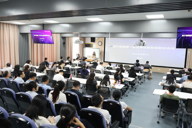 为推动人工智能技术与教育教学深度融合,提升教师信息化教学水平,构建高效互动的智慧课堂,10月14日下午,学校教师发展中心联合学堂在线组织开展雨课堂AI教学平台专题培训。本次培训特邀清华大学学堂在线培训师焦克俊主讲,全校各院系八十余名教师参与,系统学习雨课堂平台的功能应用与课程建设方法,为后续智慧课程建设落地奠定坚实基础。